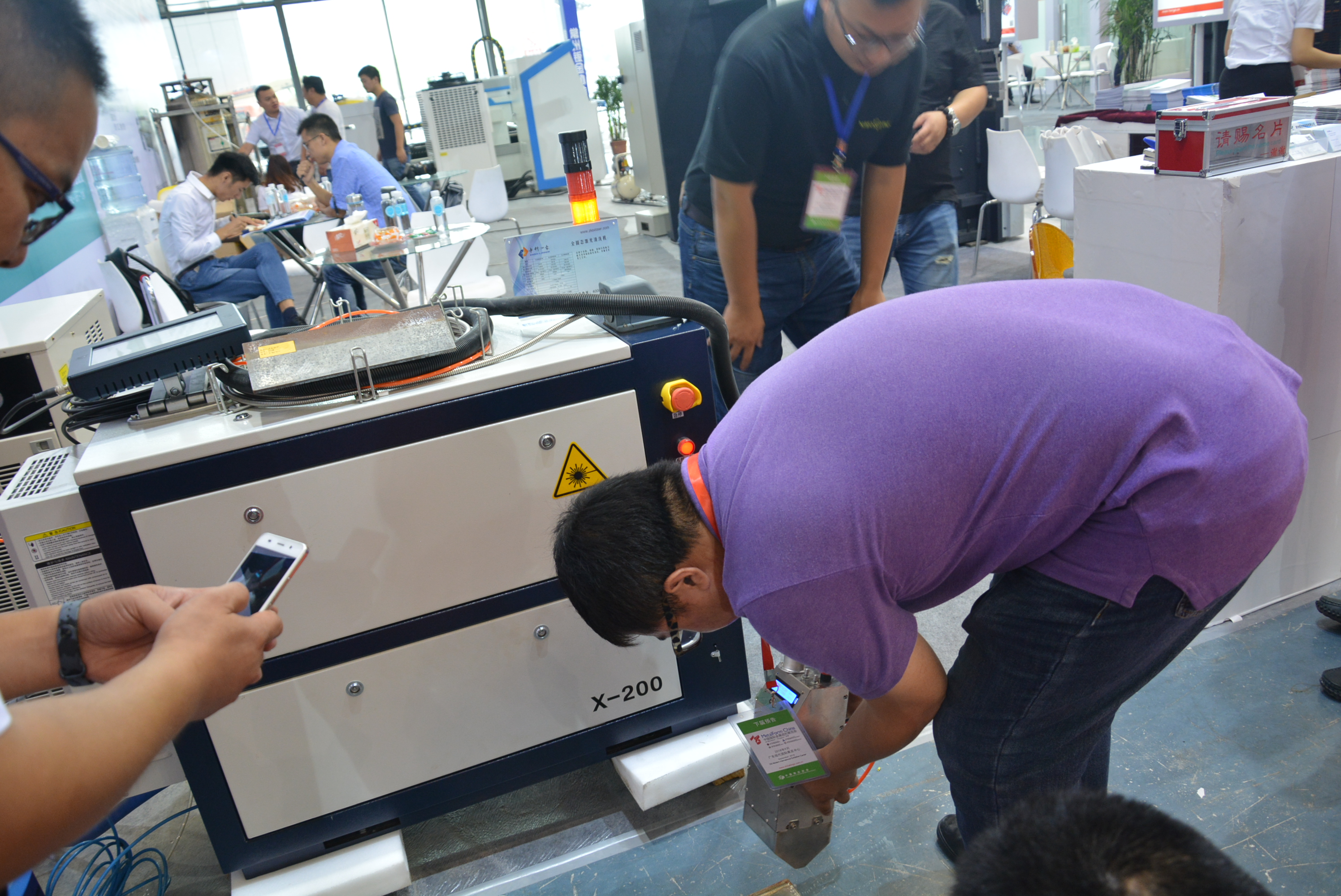 中科四象全固態(tài)激光清洗機亮相展會,工程師現(xiàn)場操作,為大家演示了最為先進激光清洗技術。
