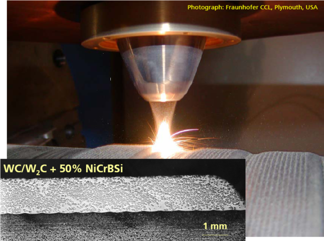 激光熔覆技術(shù)是激光加工技術(shù)的一個(gè)重要分枝,又被稱為激光表面再制造、激光表面增材制造等,是一種新的表面改性技術(shù)。其原理是通過在基材表面添加熔覆材料,并利用高能密度的激光束使之與基材表面薄層一起熔凝的方法,在基層表面形成與其為冶金結(jié)合的添料熔覆層。