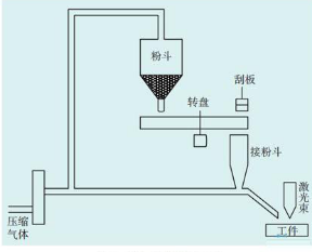 從激光熔覆的原理中我們不難看出,“在基材表面添加熔覆材料”是實(shí)現(xiàn)激光熔覆的前提,而我們通常又將“在基材表面添加熔覆材料”的過程,稱為“送粉”。